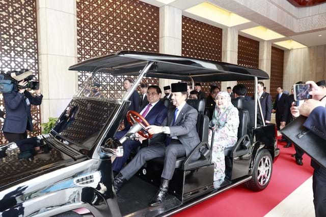 Quốc vương Hassanal Bolkiah lái xe đưa Thủ tướng Chính phủ Phạm Minh Chính và Phu nhân tham quan Hoàng cung và tới dự tiệc chiêu đãi. Ảnh: Nhật Bắc