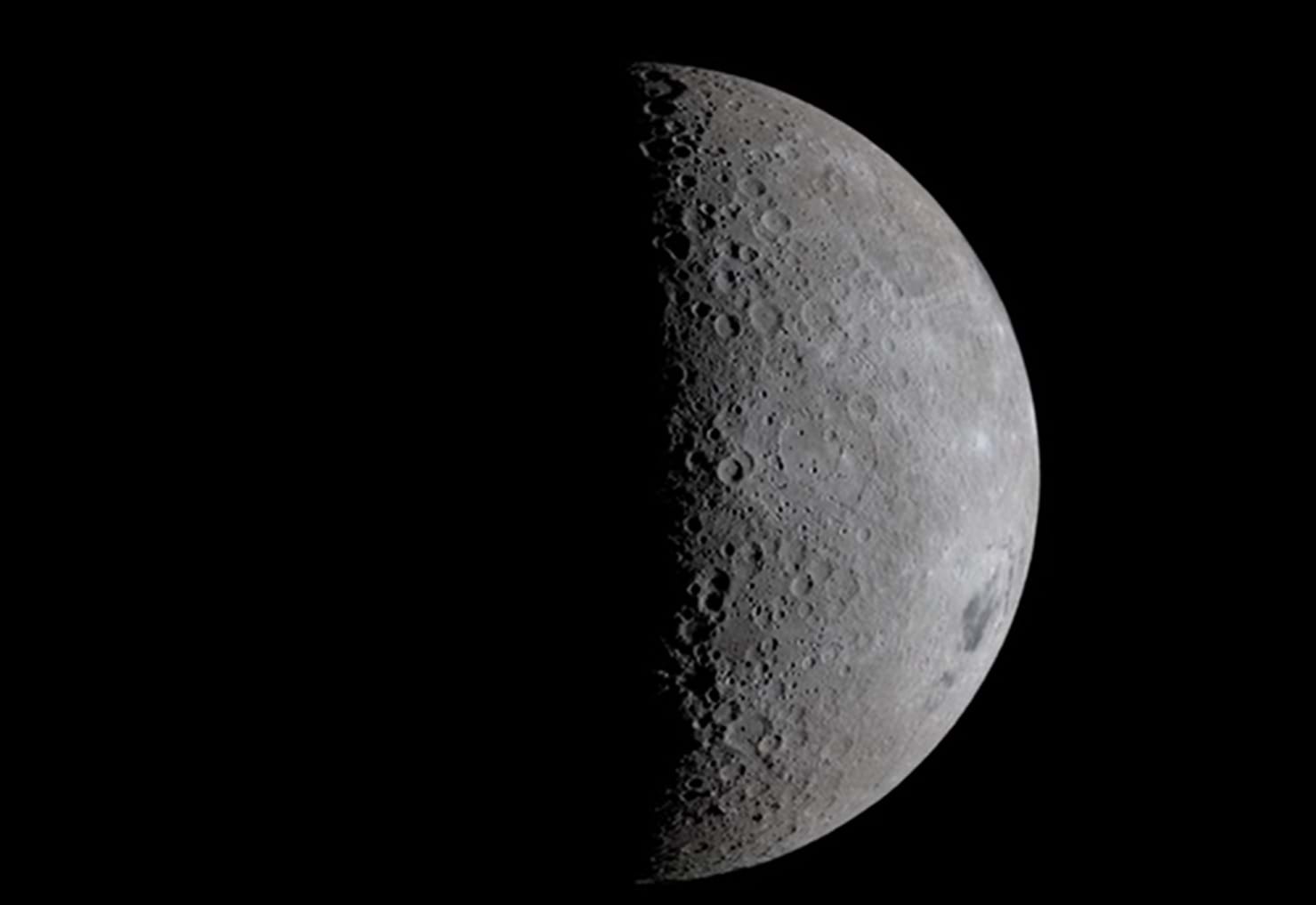 Mặt Trăng được định hướng với Cực Nam ở phía trên và họ bắt đầu nhìn thấy một phần của mặt xa Mặt Trăng. Lưu vực Orientale nằm ở rìa bên phải của đĩa Mặt Trăng trong hình ảnh này.