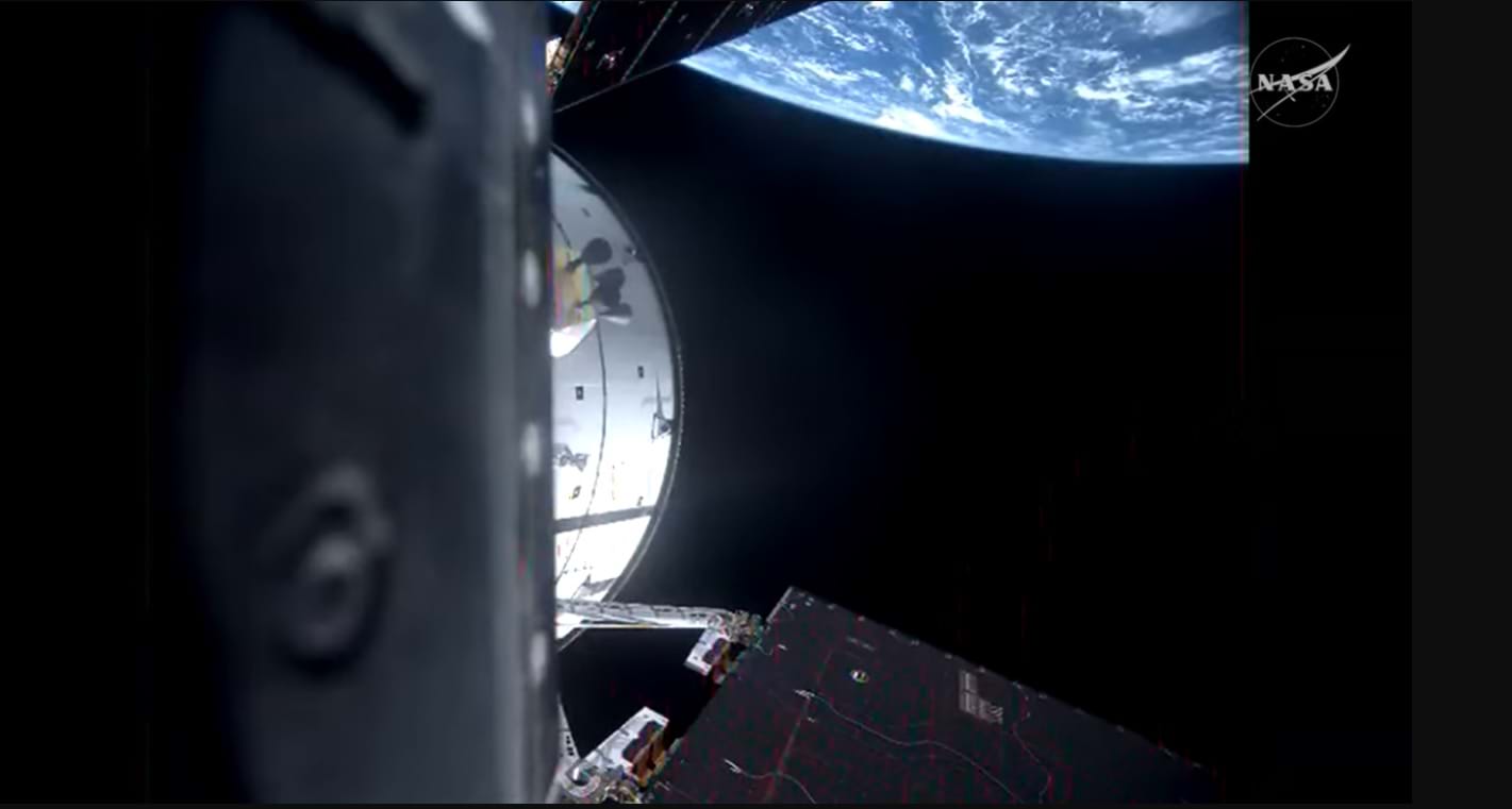 Trong cuộc kiểm tra định kỳ bên ngoài tàu vũ trụ vào ngày thứ hai, Orion tự chụp bức ảnh độ phân giải cao trong không gian bằng một chiếc camera gắn trên một trong những cánh pin mặt trời của nó.