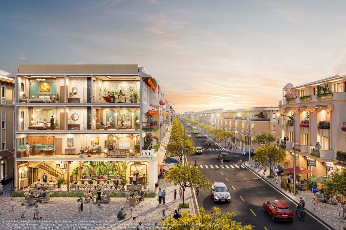 Trong danh mục các sản phẩm thỏa mãn bài toán kinh doanh, khai thác dòng tiền từ dòng du khách lên tới 40 triệu người tại Vinhomes Green Paradise trong tương lai, nhà phố Boulevard Prime trên trục huyết mạch xuyên tâm Tương Lai, rộng tới 50m, được săn đón nhiều nhất.
