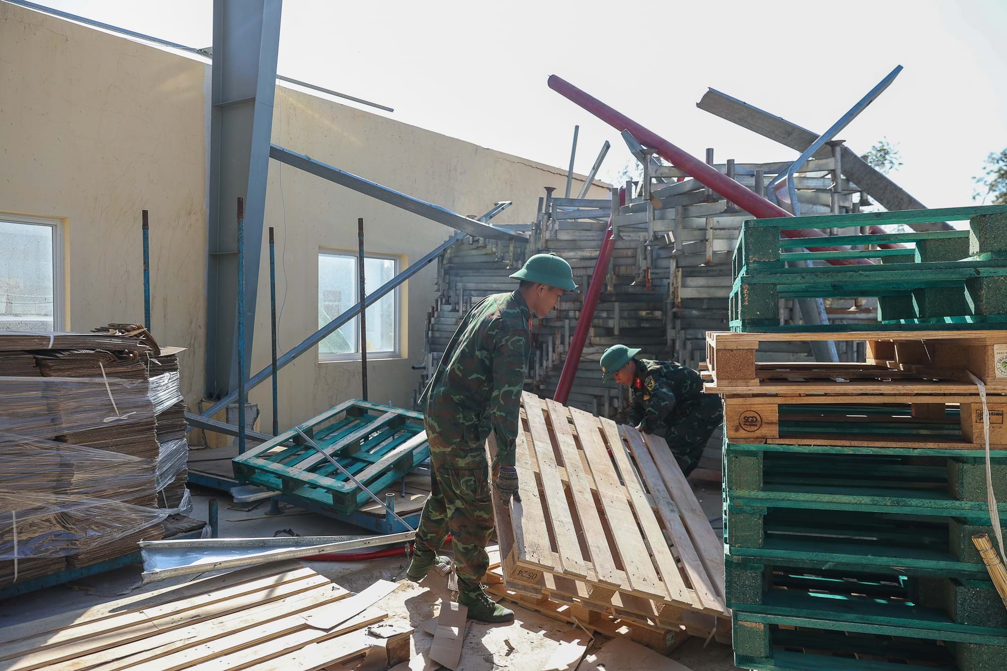 Các lực lượng chức năng tiếp tục giúp người dân, doanh nghiệp khắc phục hậu quả sau bão. Ảnh: Nhật Bắc