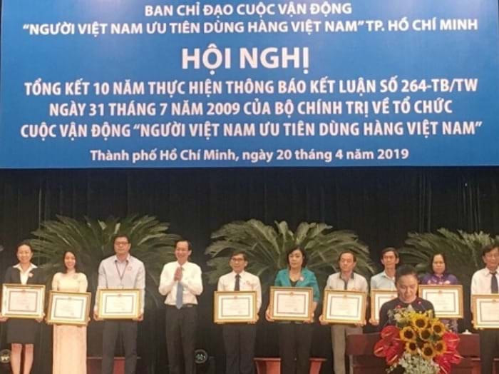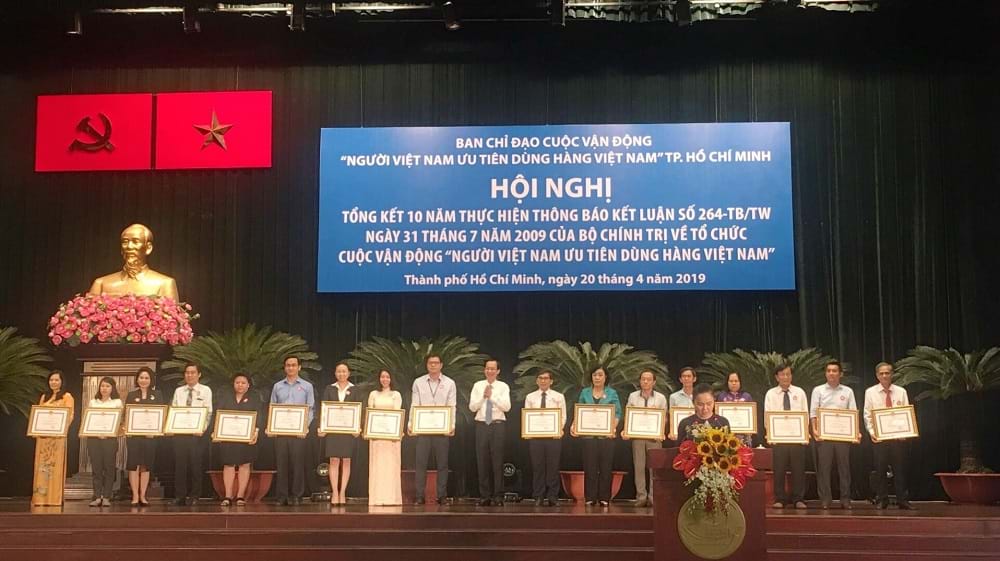 Ngày 20.4.2019, tại Hội nghị tổng kết 10 năm thực hiện Cuộc vận động “Người Việt Nam ưu tiên dùng hàng Việt Nam”, Công ty VinCommerce đã vinh dự được nhận bằng khen của UBND TP.HCM do Bí thư thành uỷ Nguyễn Thiện Nhân trao tặng. Đây là phần thưởng xứng đáng cho những nỗ lực của VinCommerce đã luôn đồng hành và hỗ trợ hàng Việt thời gian qua.