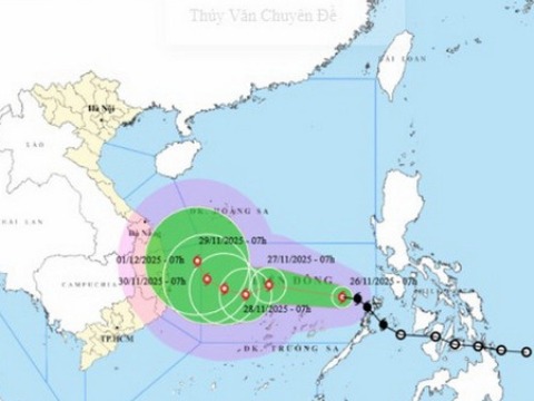 Đến 7 giờ ngày 27.11, bão trên khu vực giữa Biển Đông, cách đảo Song Tử Tây 170km về phía Bắc, di chuyển theo hướng Tây Tây Bắc với tốc độ 15-20km/h; sức gió mạnh nhất cấp 10. giật cấp 13.