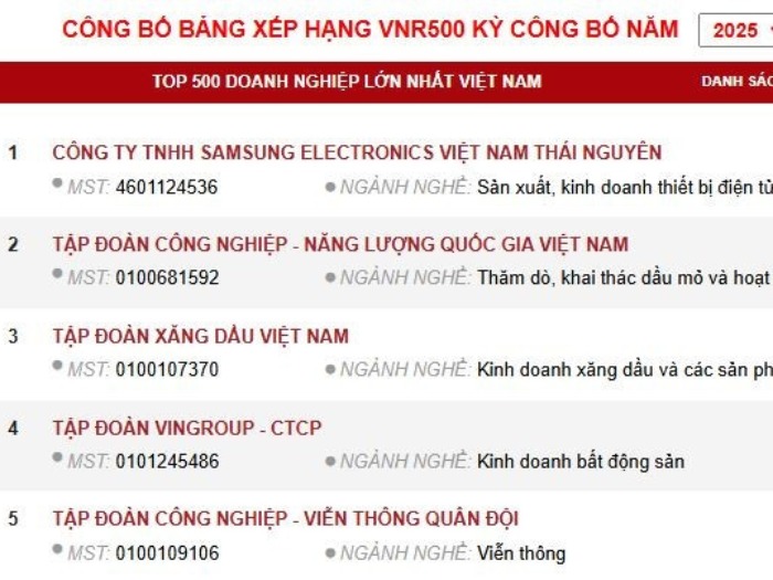 Ngày 12.11, Công ty cổ phần Báo cáo Đánh giá Việt Nam (Vietnam Report) phối hợp cùng Báo VietNamNet công bố Bảng xếp hạng VNR500 - Top 500 Doanh nghiệp lớn nhất Việt Nam năm 2025 và Bảng xếp hạng Top 500 Doanh nghiệp tư nhân lớn nhất Việt Nam năm 2025.