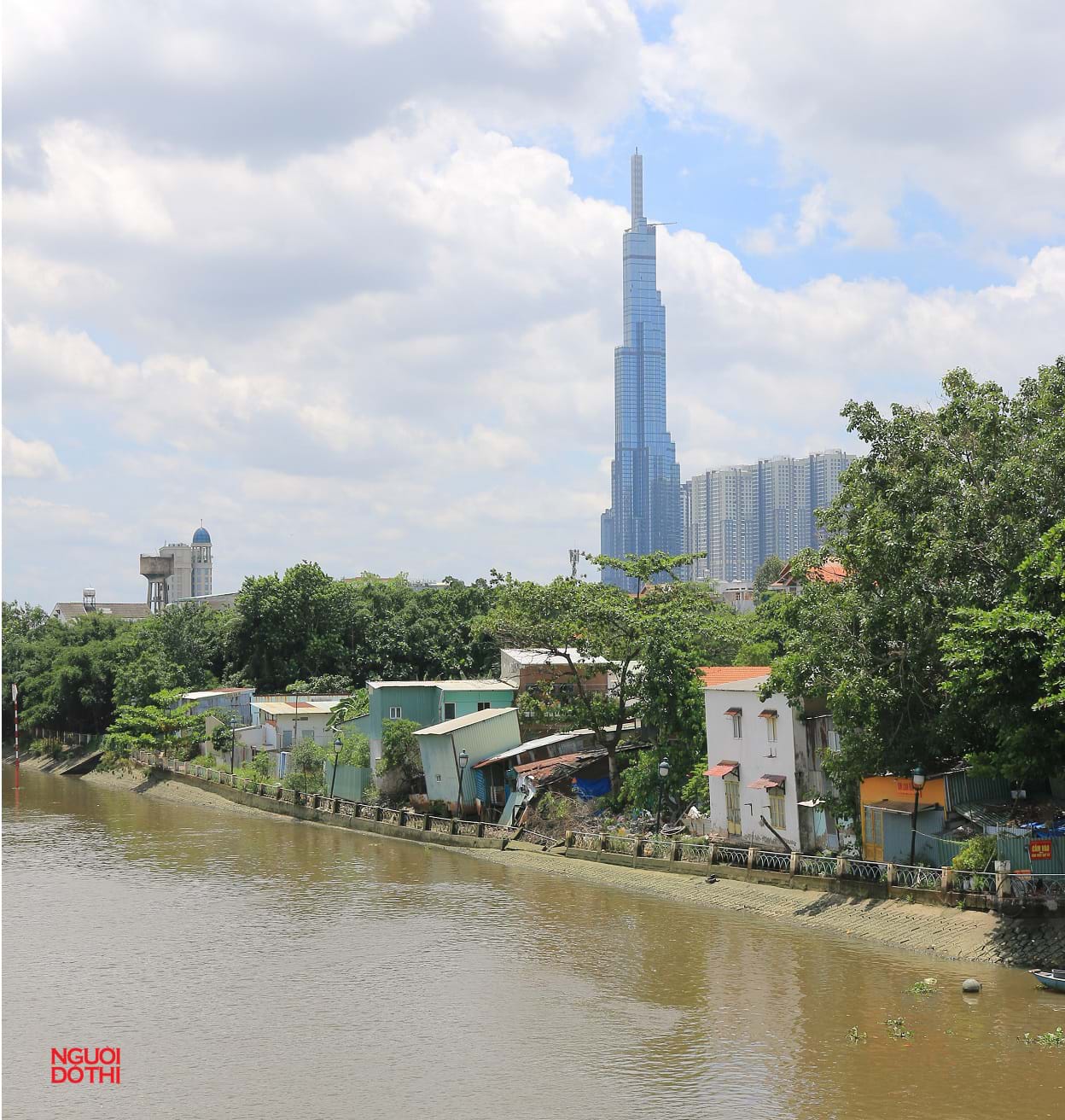 Dọc theo sông Sài Gòncó hiện tượng sụt lún lan rộng, ảnh hưởng đến nhiều khu vực. Ảnh: Lương Ý