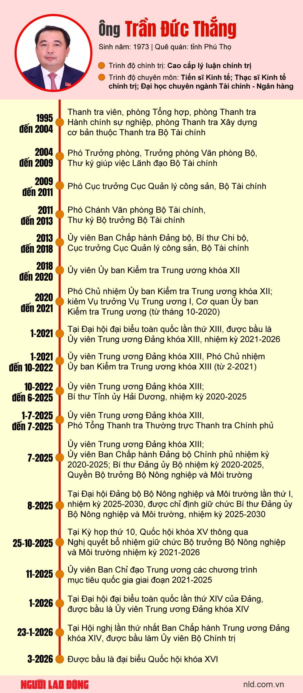 Từ 1.7.2025 - 7.2025: Ủy viên Trung ương Đảng khóa XIII, Phó Tổng Thanh tra Thường trực Thanh tra Chính phủ.