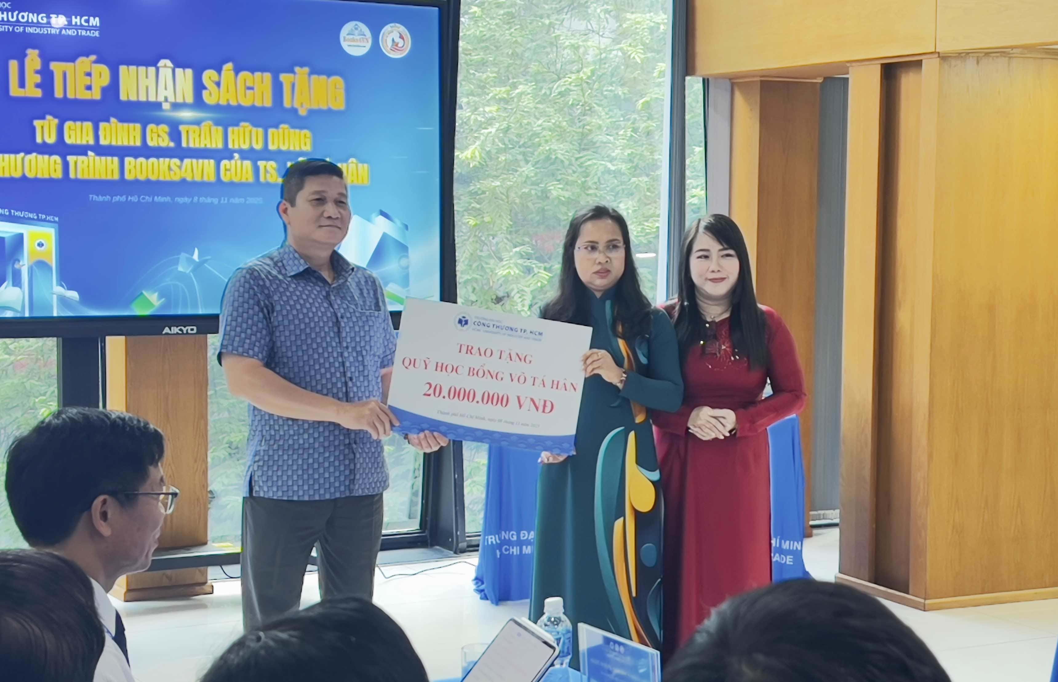 Đại học công thương TP.HCM nhận hơn 1.100 đầu sách ngoại văn do GS. Trần Hữu Dũng và TS. Võ Tá Hân trao tặng.