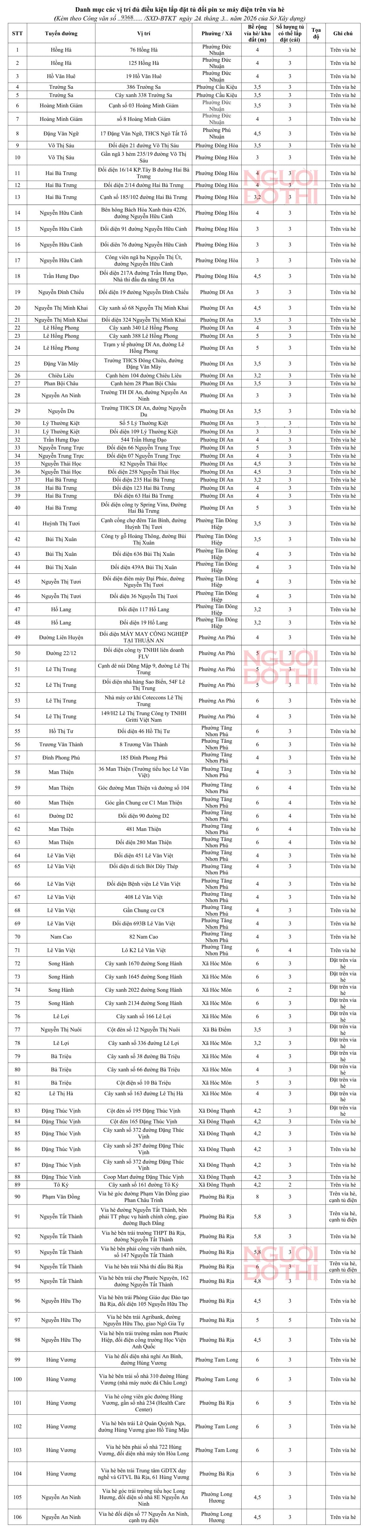 Trong thông báo ngày 24.3, Sở Xây dựng yêu cầu các doanh nghiệp căn cứ theo danh mục các tuyến đường, vị trí đủ điều kiện lắp đặt tủ đổi pin xe máy điện trên vỉa hè để xây dựng phương án lắp đặt, vận hành, khai thác tủ đổi pin đúng theo yêu cầu, hướng dẫn của cơ quan này.