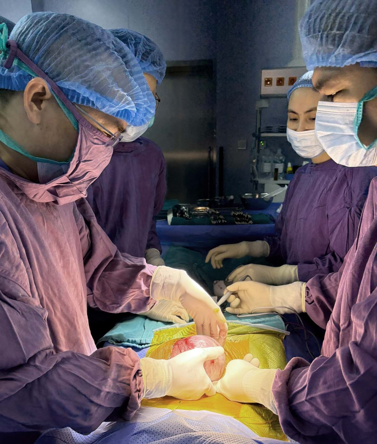 Các bác sĩ Khoa Nam học loại bỏ khối u tinh hoàn. Ảnh: TLBV