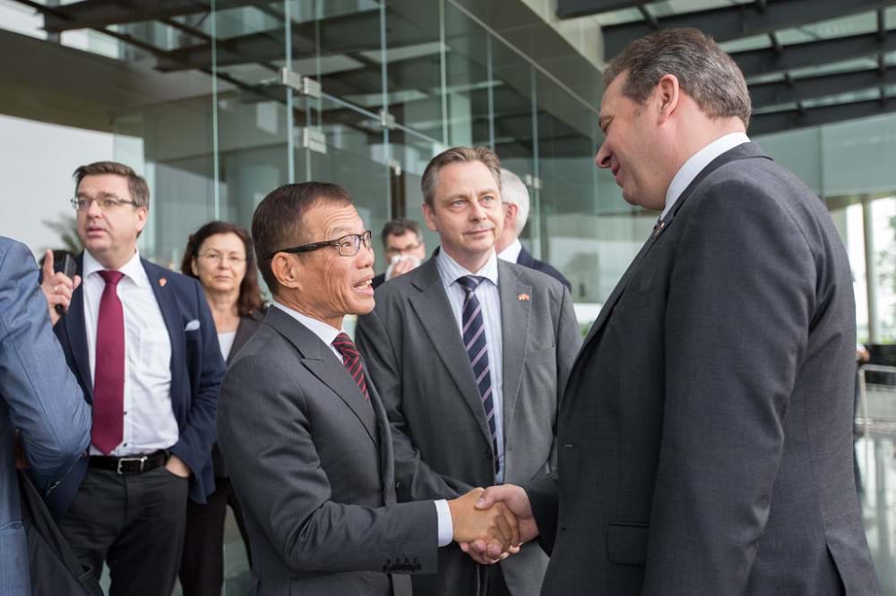 Ông Võ Quang Huệ – Phó Tổng giám đốc Tập đoàn Vingroup chào mừng đoàn Ủy ban Ngân sách Quốc hội Đức đến thăm và làm việc tại nhà máy VinFast