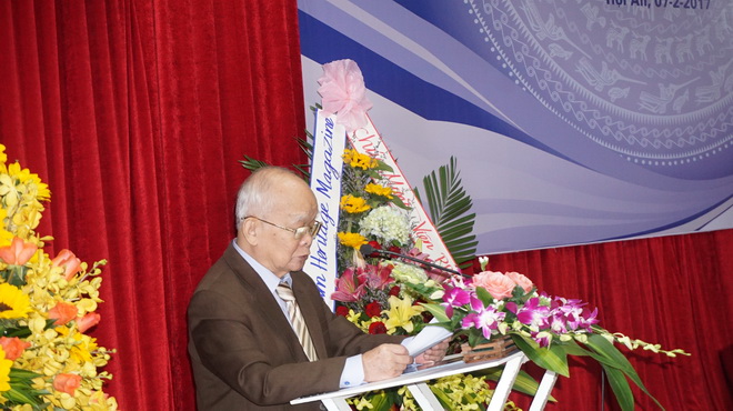 | Nhà văn Nguyên Ngọc phát biểu tại lễ ra mắt Viện Phan Châu Trinh. Ảnh: CTV |
