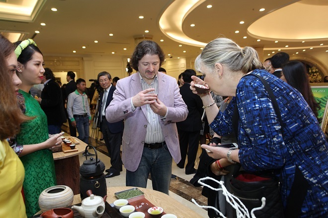 Vinatea giới thiệu trà với khách nước ngoài tại chương trình trình diễn “Điều kỳ diệu thiên hiên ban tặng” ở Hà Nội.