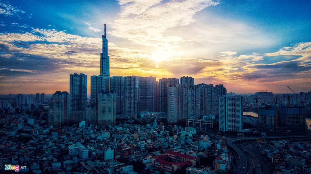 Landmark 81 - Tòa nhà cao nhất Việt Nam - lúc bình minh. Ảnh: Hoàng Hà - ZingNews.