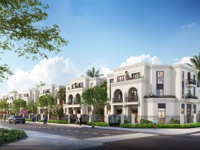 Những căn nhà phố liền kề tại Vịnh Tiên sở hữu kiến trúc châu Âu sang trọng, thiết kế hài hòa với cảnh quan xanh của siêu đô thị.