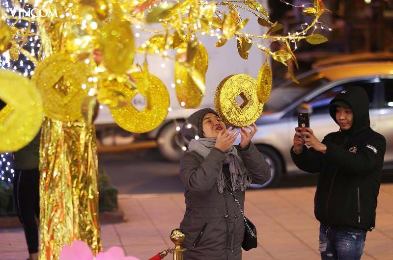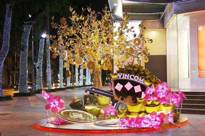 Vincom Center Bà Triệu và Vincom Center Đồng Khởi lại thu hút mọi người với “Cây Tài Lộc” và “Xe Rước Lộc”, được các nghệ nhân tạo hình lộng lẫy từ các đồng tiền vàng khổng lồ. Chạm vào cây Tài Lộc cũng giống như rước may mắn về nhà, những khung cảnh trang trí tại hai TTTM này thu hút được sự quan tâm đặc biệt của những khách hàng tới tham quan, mua sắm.