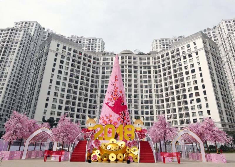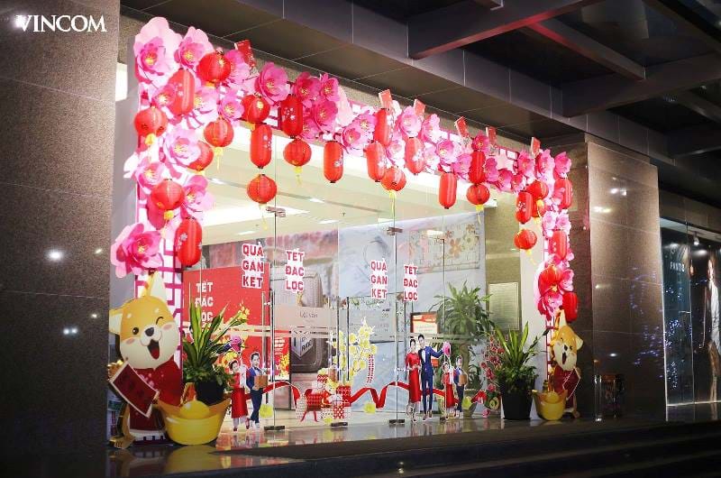 Đón năm mới Mậu Tuất 2018, hệ thống trung tâm thương mại (TTTM) Vincom trang hoàng những không gian rực rỡ lễ hội Xuân từ cổng chào, các quảng trường, khu vực tổ chức sự kiện cho tới từng gian hàng trong TTTM. Sử dụng hình ảnh hoa đào, hoa mai truyền thống nhưng với cách thể hiện độc đáo, sáng tạo; mỗi không gian tại Vincom đều trở thành điểm đến “vui Tết” thú vị dành cho người dân.