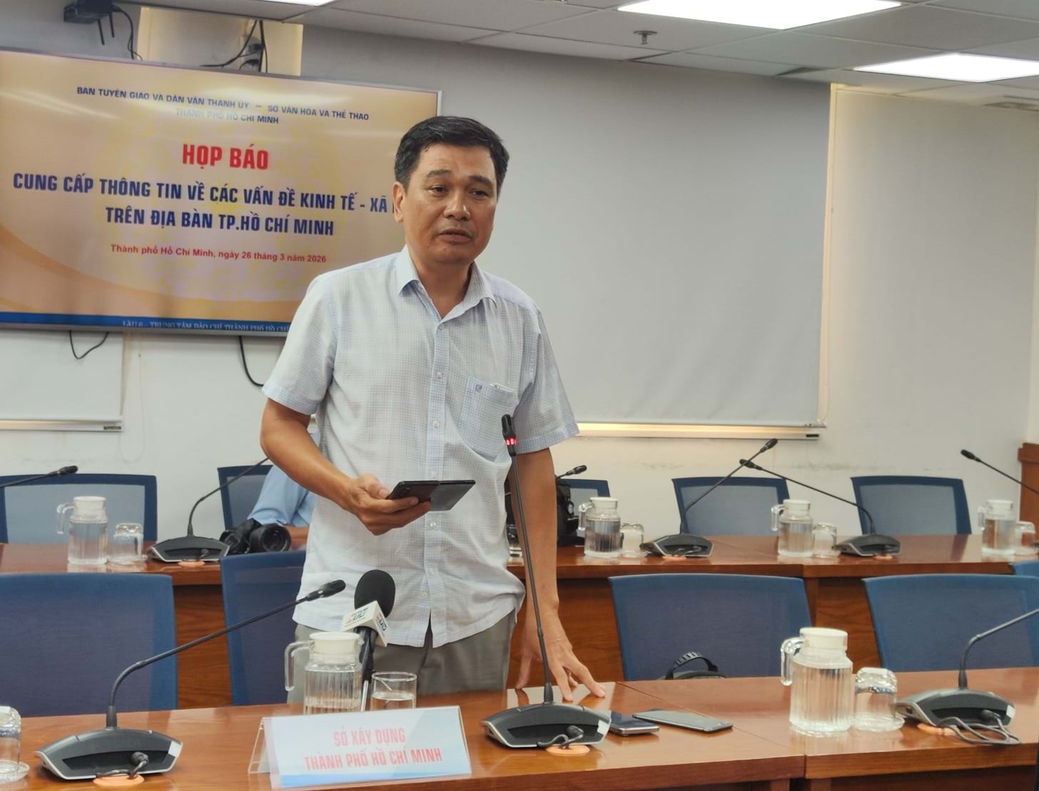 Ông Nguyễn Kiên Giang, Phó trưởng phòng Quản lý bảo trì và khai thác công trình giao thông (Sở Xây dựng TP.HCM), chia sẻ tại họp báo.