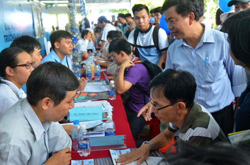 Làm thủ tục tuyển sinh tại một trường ĐH ở TP.HCM Ảnh: Tấn Thạnh