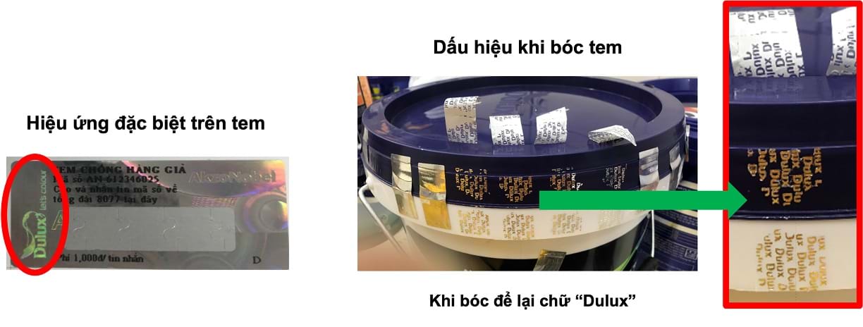 Tem chống giả trên sản phẩm Dulux và Maxilite.