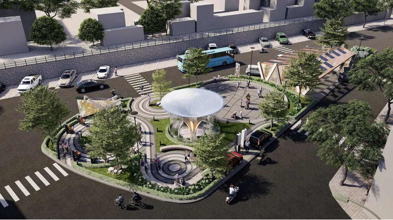 Không gian phía trên bãi đỗ xe ngầm được tổ chức đồng bộ với cảnh quan đô thị hiện hữu. Các hạng mục kỹ thuật nổi như lối lên xuống dành cho ô tô và xe máy được bố trí kết hợp hệ thống cây xanh, vườn hoa và các tuyến đường dạo. Khu vực này còn có công trình tạo điểm nhấn kiến trúc gắn với lối tiếp cận xuống khu dịch vụ thương mại, cùng các không gian sinh hoạt cộng đồng như sân chơi, sân thể dục thể thao và đường dạo được thiết kế theo cấu trúc hình tròn hướng tâm.