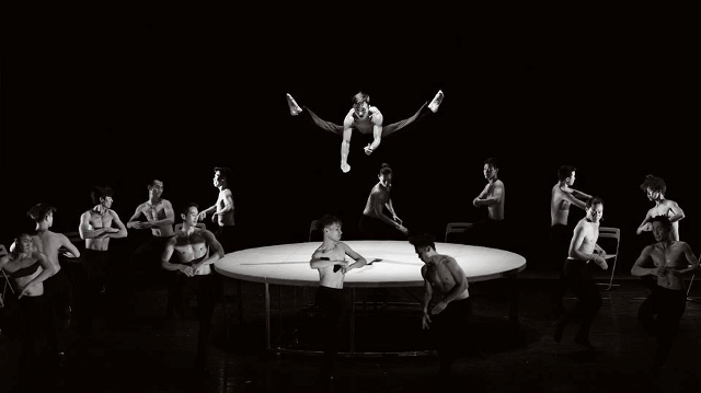 Song hành cùng với âm nhạc, tác phẩm được bắt đầu với những động tác đơn giản của nghệ sĩ solo trên sân kháu tròn chính giữa. Âm nhạc được mở rộng dần với sự tham gia của nhiều nhạc cụ hơn, màu sắc ngày càng phong phú hơn, cường độ cũng lớn dần, các nghệ sĩ múa cũng bắt đầu tham gia nhiều hơn, động tác nhiều hơn, không khí được đẩy dần lên, căng thẳng và bùng phát về cuối với những tạo hình mạnh mẽ bởi nghệ sĩ solo và hơn gần 20 nam nghệ sĩ trong những tông ánh sáng nóng, bức bối, táo bạo.
