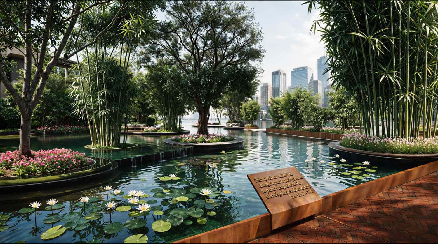 Phần công viên văn hóa tại khu vực Bến Nhà Rồng có quy mô khoảng 9ha, được thiết kế xoay quanh một ý tưởng xuyên suốt: dòng nước. Dòng chảy ấy không chỉ mang ý nghĩa cảnh quan, mà còn được sử dụng như một “ngôn ngữ kể chuyện”, dẫn dắt người xem đi qua từng chặng đường trong cuộc đời và sự lan tỏa của các giá trị vĩnh cửu của Chủ tịch Hồ Chí Minh.