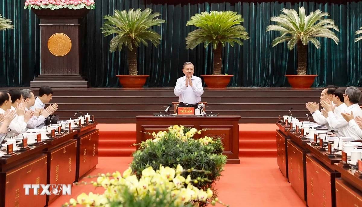 Tại buổi làm việc, sau khi nghe đại diện lãnh đạo TP.HCM báo cáo và các ý kiến phát biểu trách nhiệm của các ban, bộ, ngành Trung ương, Tổng Bí thư, Chủ tịch nước Tô Lâm cơ bản thống nhất với nhiều nội dung đã được nêu, đồng thời đánh giá cao và biểu dương những nỗ lực lớn, tinh thần trách nhiệm và quyết tâm chính trị của Đảng bộ, chính quyền, quân và dân TP.HCM.