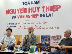 Tác giả Phan Đăng (bên trái) chia sẻ tại sự kiện giao lưu và giới thiệu sách 39 đoản thiền để thấy.
