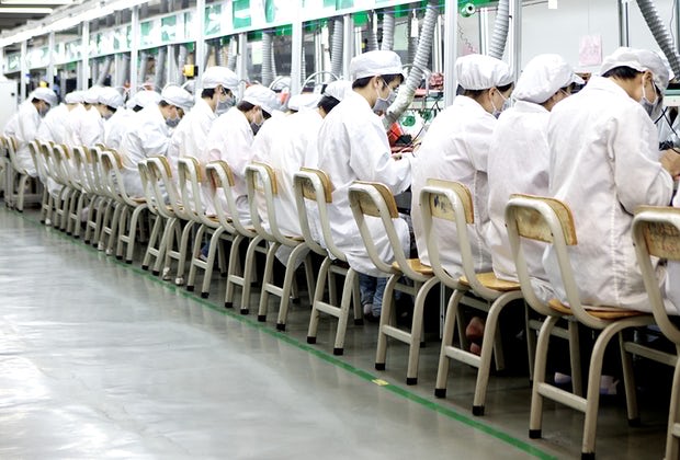 Một dây chuyền lắp ráp trong nhà máy Longhua của Foxconn tại Thâm Khuyến, Trung Quốc