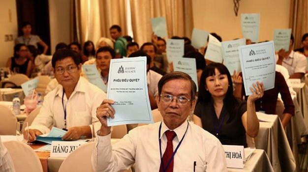 Biểu quyết tại ĐHĐCĐBT diễn ra ngày 2.8.2014. Ảnh: TTO