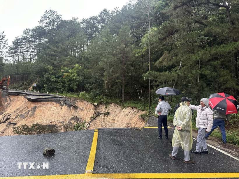 Đèo Mimosa bị sạt lở nghiêm trọng. Ảnh: Chu Quốc Hùng/TTXVN