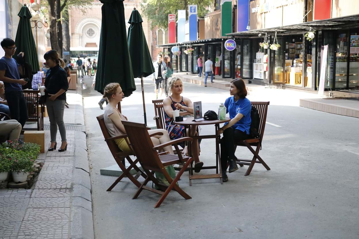 Mỗi ngày, Đường Sách đón nhận hơn 3.000 lượt khách, trong đó có 30% là du khách quốc tế. Ảnh: Trung Dũng