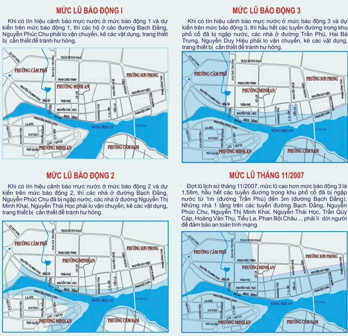 Trên các tuyến phố như Bạch Đằng, Nguyễn Thái Học, Trần Phú, Nguyễn Phúc Chu…, hình ảnh những chiếc xe máy, bàn ghế, tủ quần áo được đưa lên tầng hai hay chất lên kệ gỗ đã trở nên quen thuộc. Với người dân phố Hội, ứng phó với lũ đã trở thành một phần trong nếp sống và kinh nghiệm truyền đời.