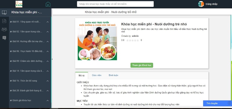 Theo tiến sỹ Trần Hoàng Hải, Phó Giám đốc Trung tâm Mạng thông tin, Đại học Bách Khoa Hà Nội, khóa học về nuôi dưỡng trẻ nhỏ trên website http://elearning.mattroibetho.vn được xây dựng phù hợp với nhiều đối tượng và môi trường học, giao diện thân thiện, hệ thống học tập được xây dựng đa nền tảng, hỗ trợ tốt các thiết bị di động giúp người học tham gia mọi lúc, mọi nơi.