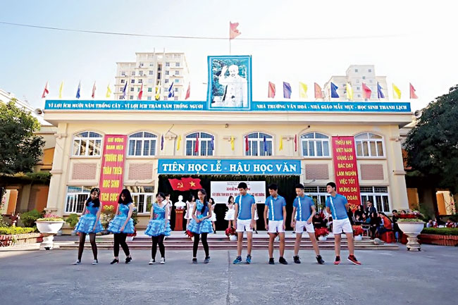 Hình ảnh trên trang web trường tiểu học Nam Trung Yên: trong những người phải thực hiện các câu khẩu hiệu này, không có hiệu trưởng? Ảnh: CTV