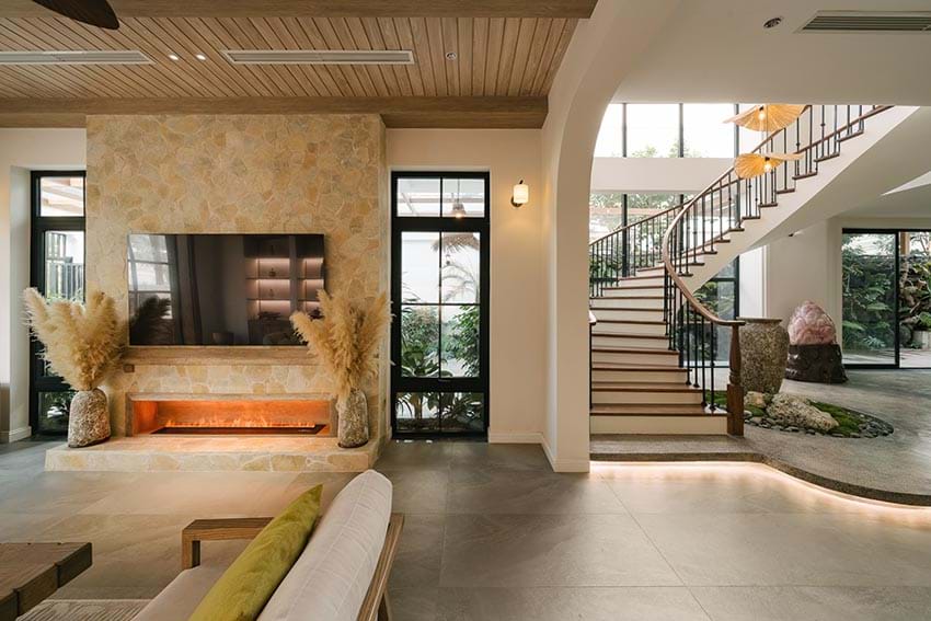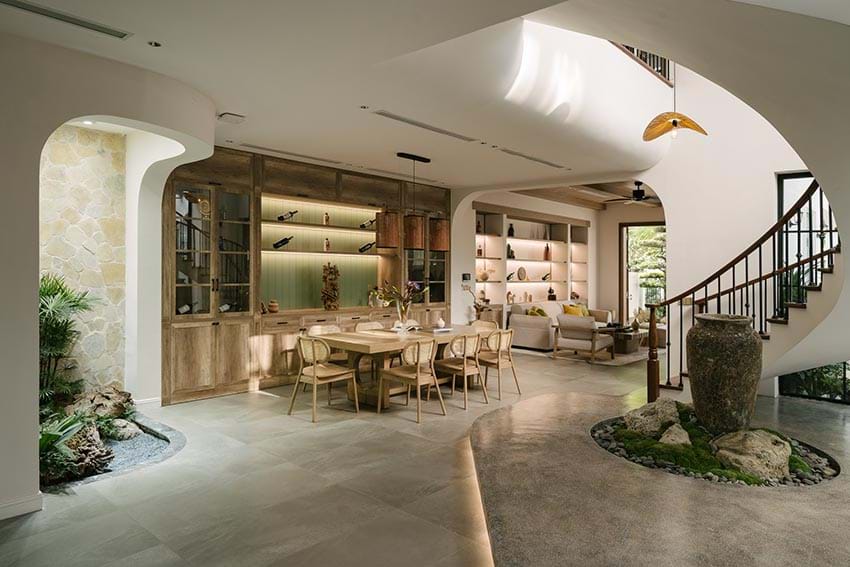 The Inner Calm Villa được thiết kế như một hệ sinh thái thu nhỏ — nơi ánh sáng thay đổi theo giờ, cây cối chuyển mình theo mùa, và không khí luân chuyển theo một logic gần như tự nhiên. Những yếu tố tưởng như vô hình ấy lại chính là thứ định nghĩa chất lượng sống thực sự.