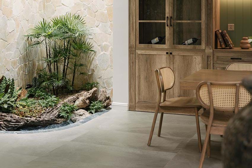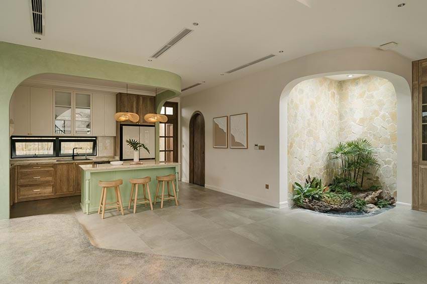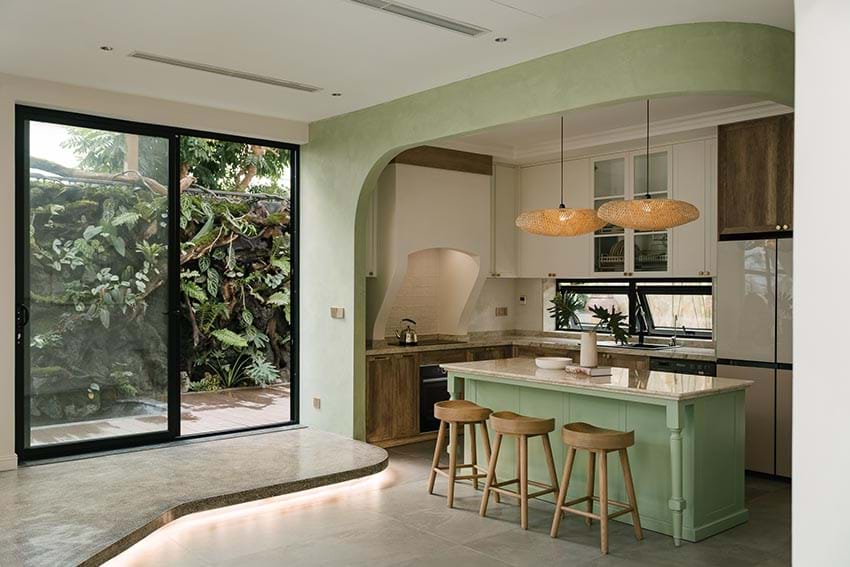 Một khu vườn không còn là điểm nhấn trang trí, mà trở thành “trục cảm xúc” xuyên suốt không gian. Từ bất kỳ vị trí nào trong nhà, người ta cũng có thể nhìn thấy màu xanh — như một lời nhắc nhẹ rằng cuộc sống luôn cần khoảng dừng.