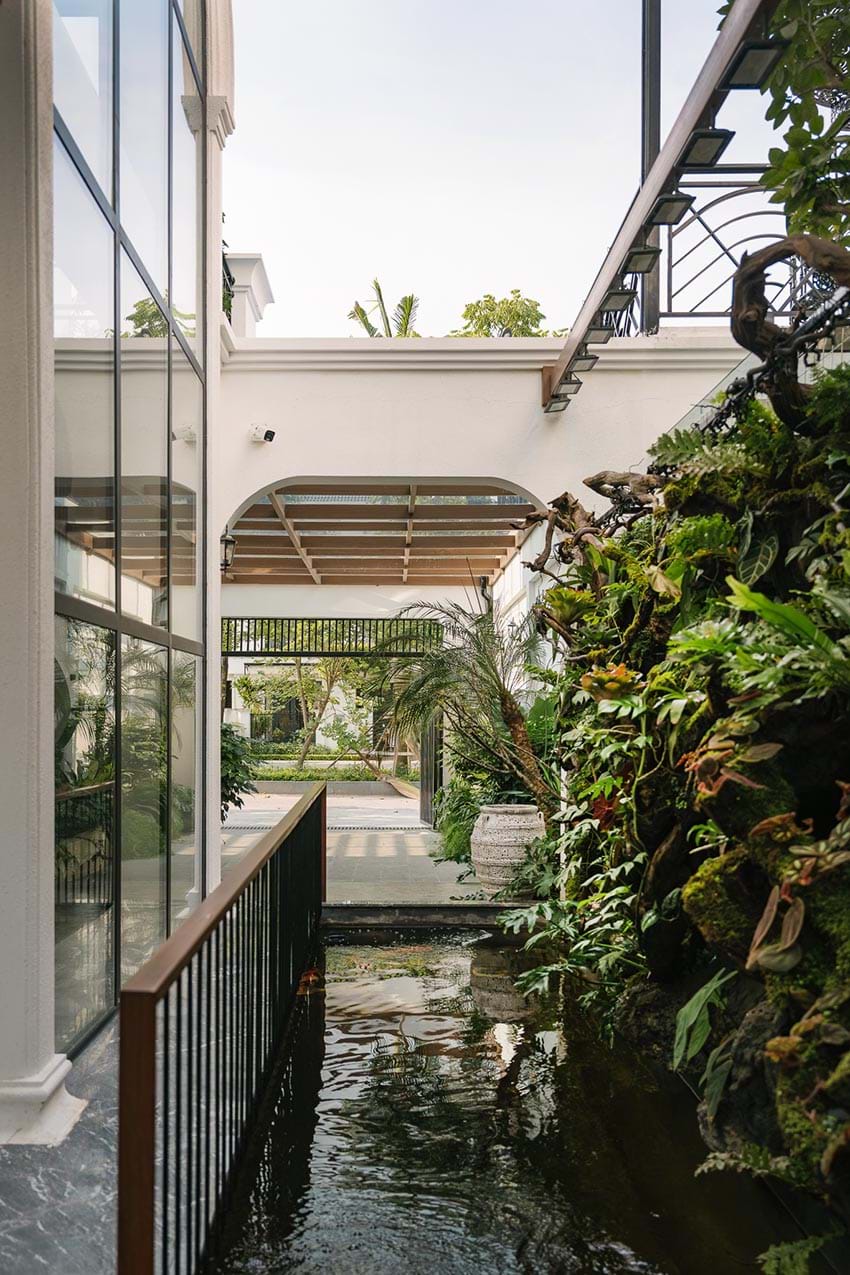 Bằng cách mở các diện tường, tái cấu trúc giao thông và khai thác tối đa khe sáng, hồ nước cùng lớp đệm thực vật, căn biệt thự tạo ra một vòng tuần hoàn không khí cả theo phương ngang lẫn phương đứng. Nó không “làm mát” theo kiểu cơ học, mà thở — một cách chậm rãi, bền vững và đầy bản năng.