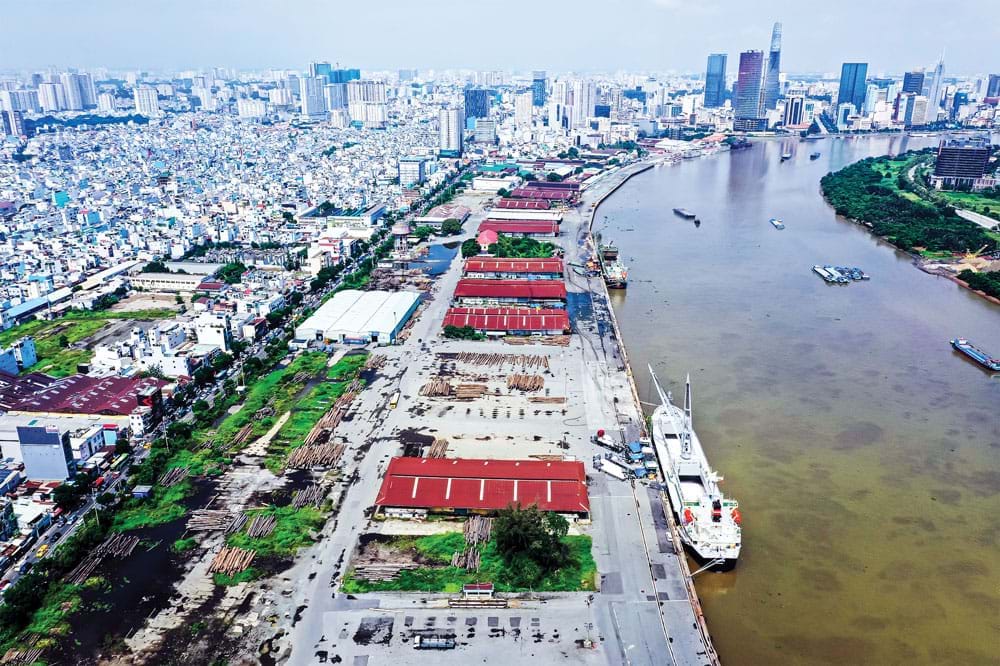 Các tổ hợp kho bãi dọc sông Sài Gòn (Trong ảnh là khu vực Cảng Khánh Hội) là những di sản công nghiệp đô thị giàu tiềm năng mang dấu ấn lịch sử phát triển có thể trở thành chất xúc tác để tái định vị bản sắc đô thị trong bối cảnh toàn cầu hóa. Ảnh: Nam Anh