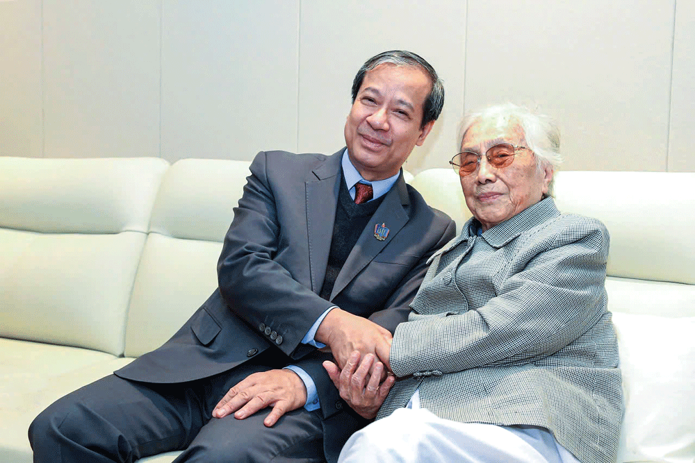 Bộ trưởng Bộ Giáo dục và Đào tạo Nguyễn Kim Sơn thăm và chúc mừng nguyên Bộ trưởng Bộ Giáo dục và Đào tạo Nguyễn Thị Bình nhân Ngày Nhà giáo Việt Nam 20.11.2025. Ảnh: Trần Hiệp