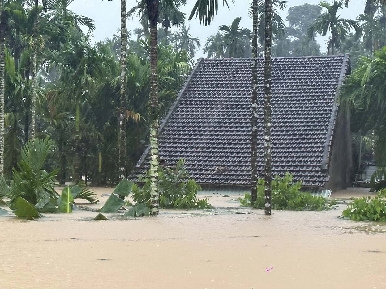 Lũ lớn gây ngập nhà dân ven sông Thu Bồn.