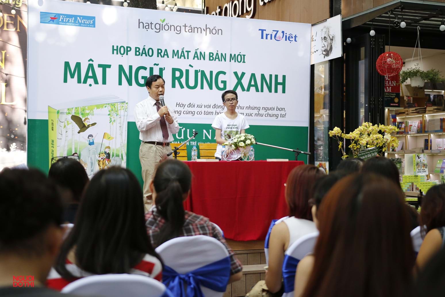 Một trong những cuộc ra mắt sách đầu tiên tại Đường sách. Trong ảnh là cuộc ra mắt sách Mật ngữ rừng xanh của tác giả Lê Hữu Nam (bên phải) vào ngày 20.1.2016. Tác giả Lê Hữu Nam đã qua đời năm 2021 sau một thời gian dài chống chọi với bệnh tim.