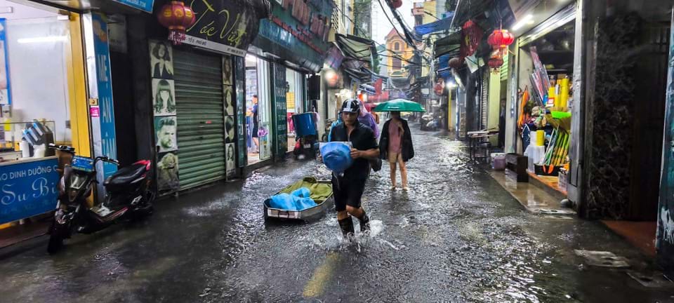 Do mực nước sông, hồ nội đô ở ngưỡng cao, nhiều khu vực bị úng ngập như: Lê Đức Thọ (quảng trường sân vận động Mỹ Đình), Phú Xá (ngã ba Phú Xá - Phúc Hoa), Dương Đình Nghệ-Nam Trung Yên (sau Keangnam), Võ Chí Công (tòa nhà UDIC), Hoàng Quốc Việt (Đại học Điện lực), Phan Văn Trường (cổng chợ - doanh trại quân đội), Hoa Bằng (ngõ 99), Trần Cung (cây xăng A38), Trần Bình (từ Ủy ban nhân dân phường Mai Dịch đến Bệnh viện 19/8), Mạc Thị Bưởi, phố Minh Khai (chân cầu Vĩnh Tuy), Huỳnh Thúc Kháng (ngã ba Nguyên Hồng - ngõ 14), Thành Công (trước Ủy ban nhân dân phường), đường Ngọc Lâm (từ ngã ba Long Biên 1 đến Xí nghiệp Môi trường đô thị Gia Lâm), Đức Giang (từ chợ Đức Hòa đến ngõ 97), Đàm Quang Trung (trước và đối diện siêu thị Aeon Mall), Cổ Linh (trước và đối diện Trung học cơ sở Long Biên), gầm chui xe lửa phố Thiên Đức, Tố Hữu (từ Lương Thế Vinh đến Trung Văn), Đỗ Đức Dục (đường vào Miếu Đầm), Nguyễn Trãi (khu Đại học Khoa học Xã hội và Nhân văn - bên chẵn làn xe buýt), Quan Nhân, Yên Nghĩa (từ bến xe Yên Nghĩa đến ngã ba Ba La), phố Xốm (đối diện tòa nhà Hải Phát), Lê Lợi - Trần Hưng Đạo (khu vực quanh chợ Hà Đông), đường Quyết Thắng, Tô Hiệu (trước Chi cục Thuế và tòa nhà HUD3), quốc lộ 6 (đoạn tổ dân phố 1+4 phường Yên Nghĩa), khu TT18 phường Phú La.