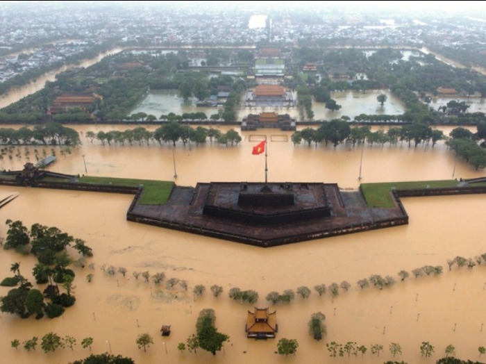 Di tích Kinh thành Huế bị ngập trong nước lũ trong đợt mưa lũ lịch sử vừa qua.