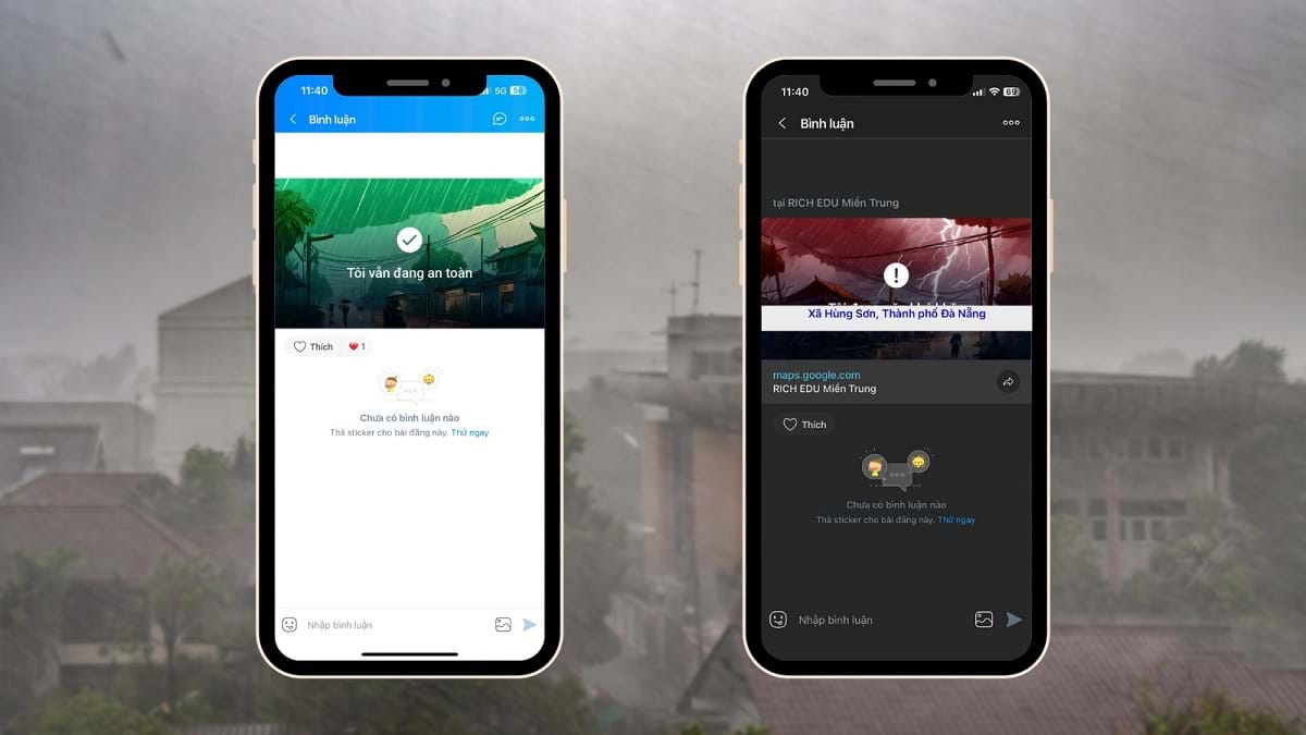 Người dân Đà Nẵng và Huế cập nhật tình trạng an toàn - gặp khó khăn trên Zalo SOS.