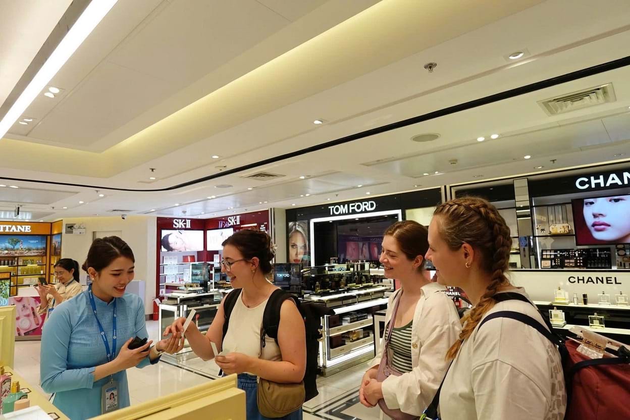 Khách vui vẻ hàng trải nghiệm và mua sắm cùng các thương hiệu quốc tế nổi tiếng.