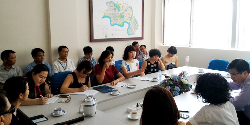 | Đại diện cư dân 18 khu phố ở Phú Mỹ Hưng đưa ra những chất vấn về môi trường sống tới đại diện chủ đầu tư. Ảnh: T.Dũng |