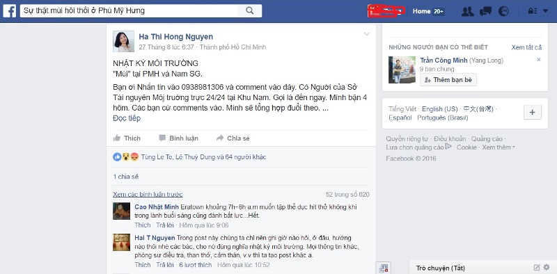 | Ảnh chụp nhật ký môi trường trên nhóm “Sự thật mùi hôi thối tại Phú Mỹ Hưng" bắt đầu từ ngày 27.8 nhưng đã nhận được 620 phản hồi. Ảnh: T.D |