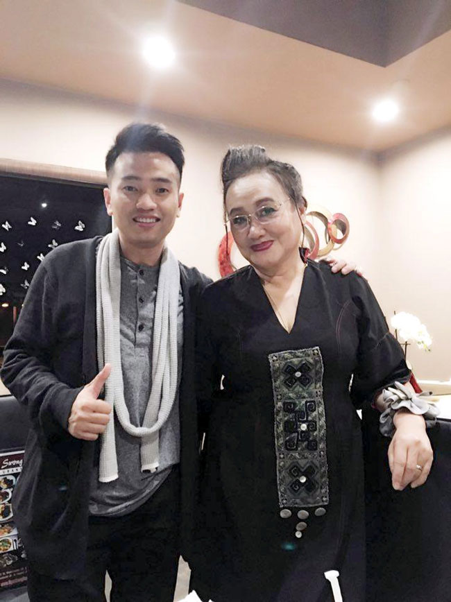 Tác giả cùng ca sĩ Quốc Tuấn trong chương trình Ngọc Trong Tim 6. Ảnh: TLTG