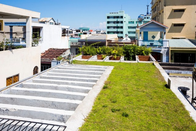 | Trên tầng thượng là thảm cỏ xanh mướt, nơi lý tưởng để tổ chức tiệc nướng. |